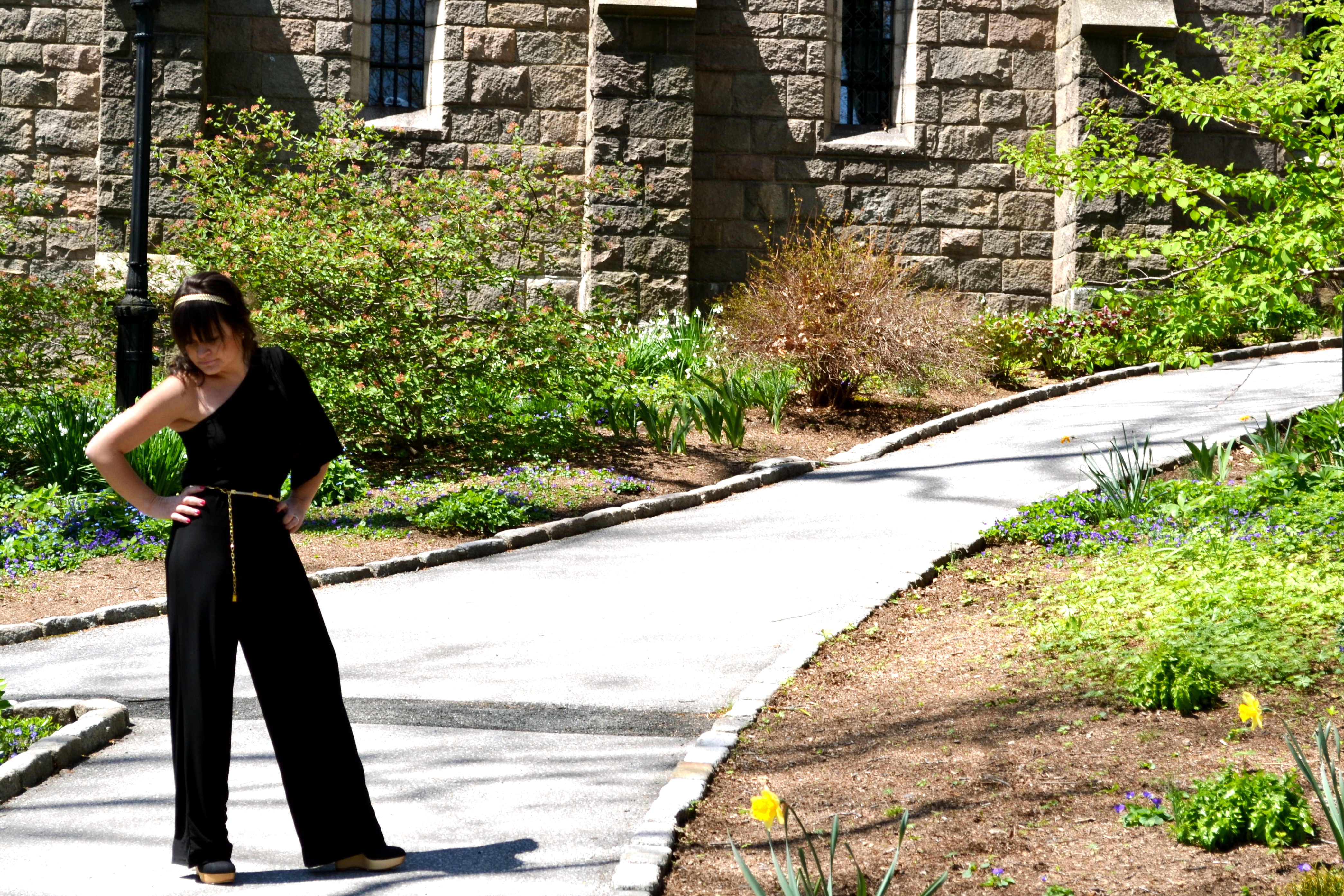 Black jumpsuit (similar here), gold chain belt (similar here), shoes from Messeca NYC.
